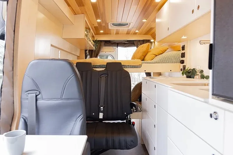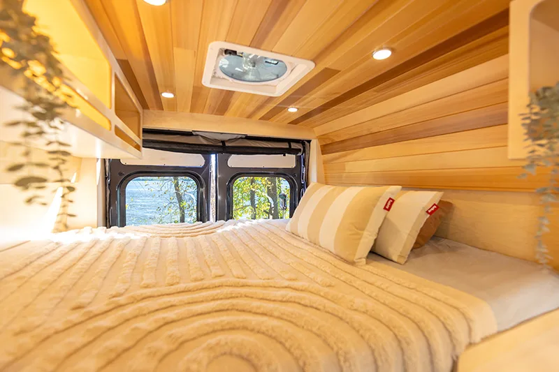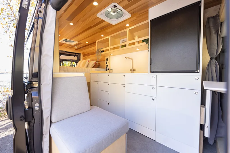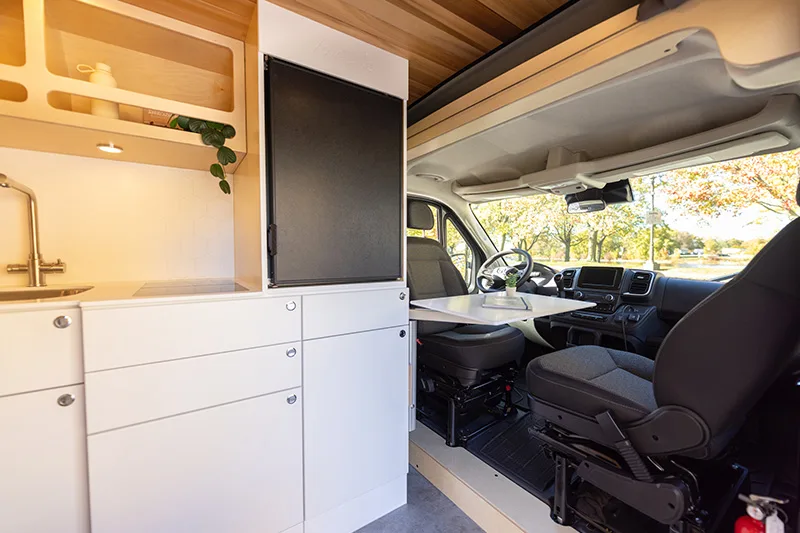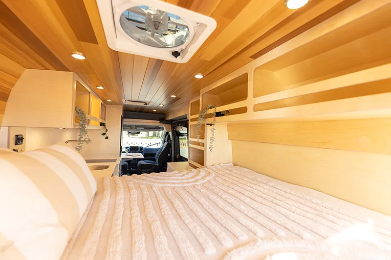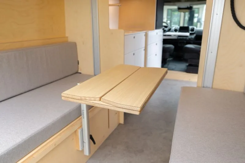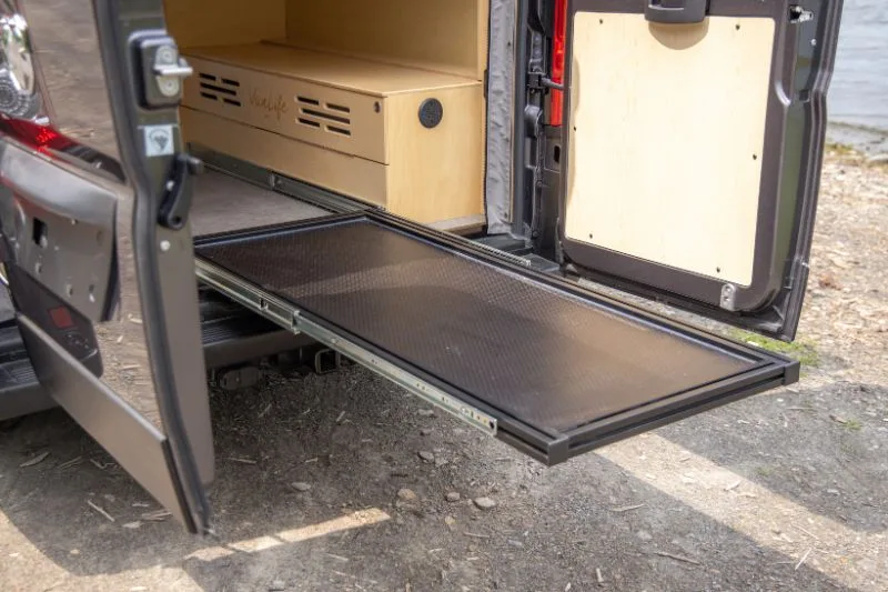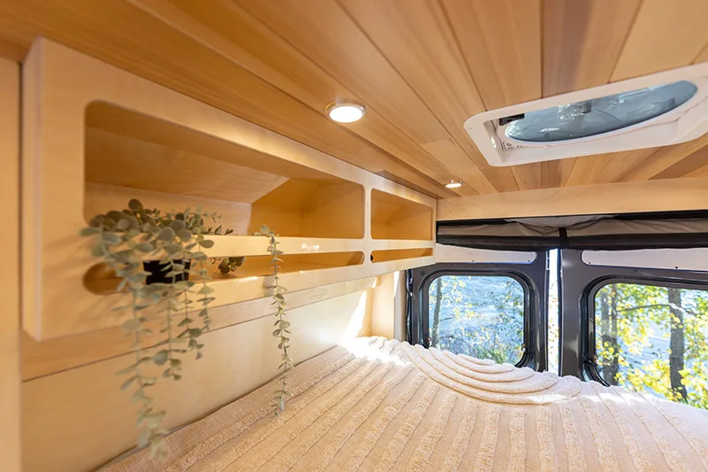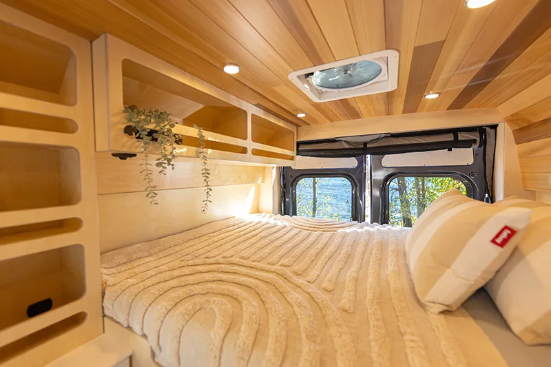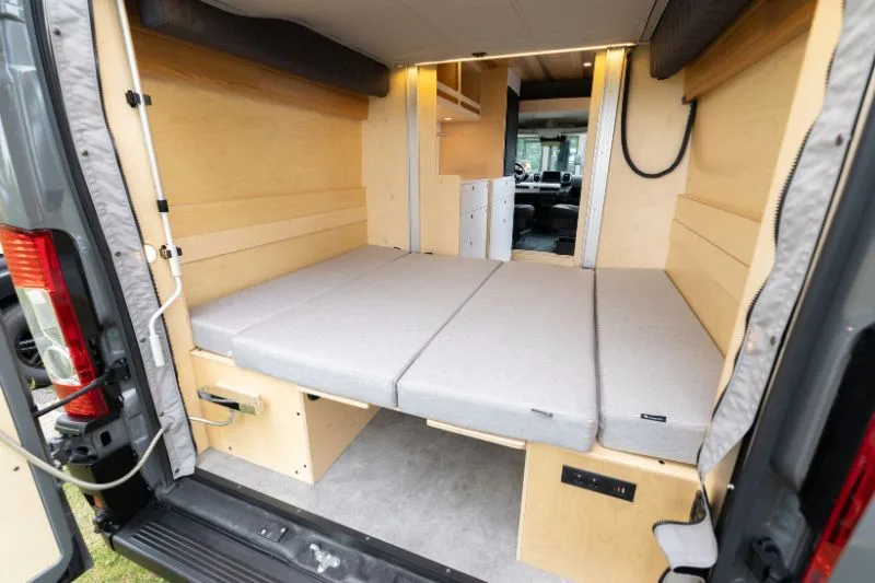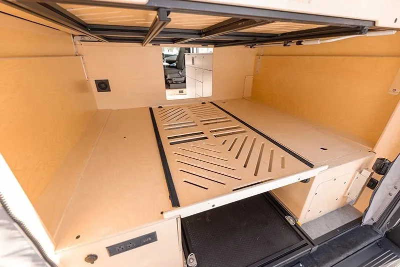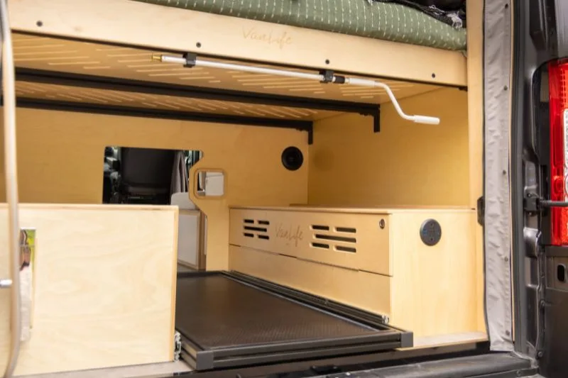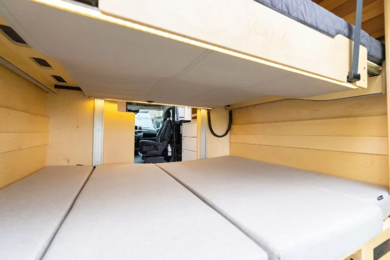 Découvrez le lit électrique, une innovation VanLife Campers qui vous permet de maximiser l’espace de votre van en un seul geste. Relevez-le pour libérer un espace salon/salle à manger ou abaissez-le près du sol pour un accès facile au lit. Disponible en plusieurs configurations!