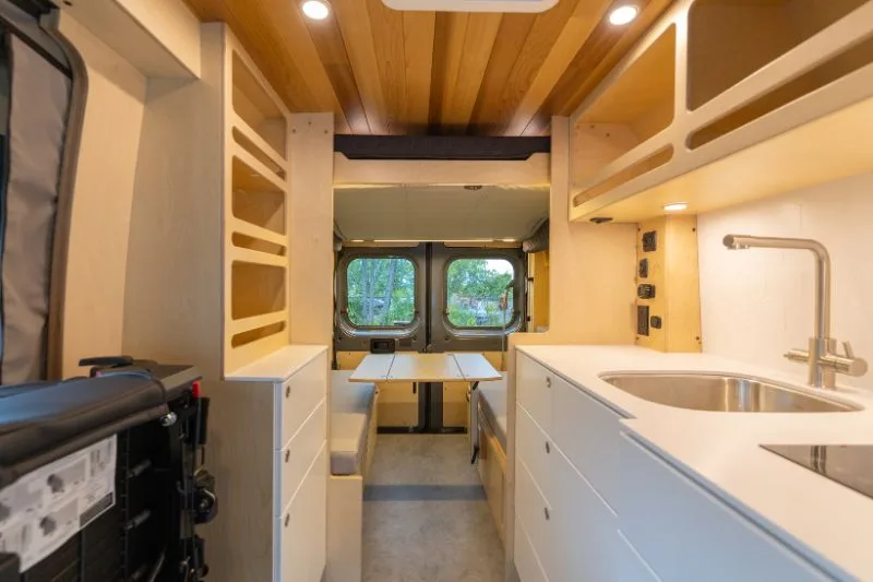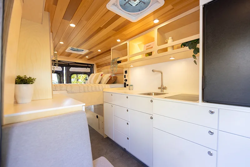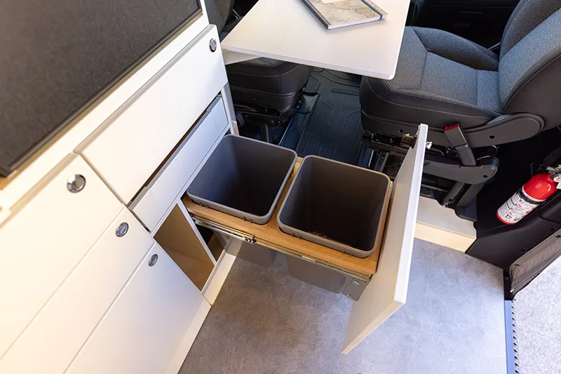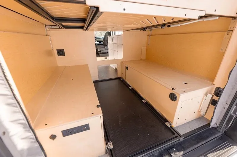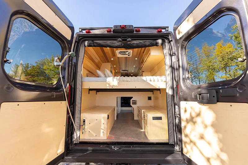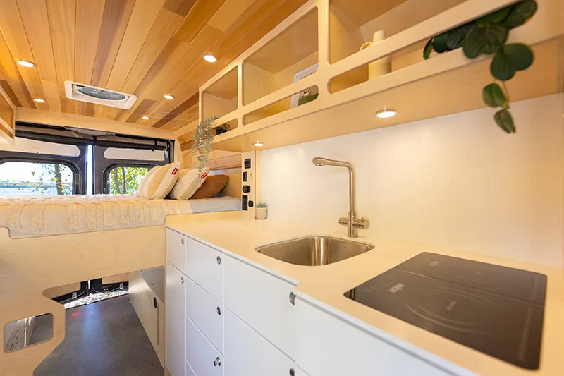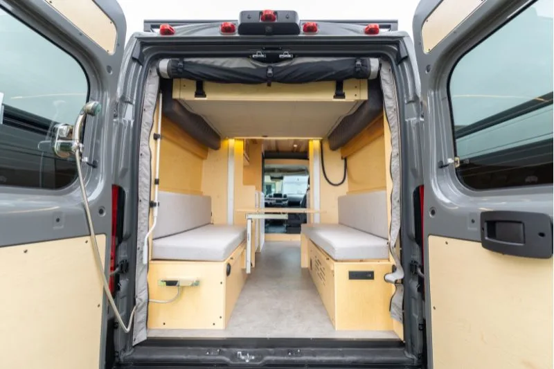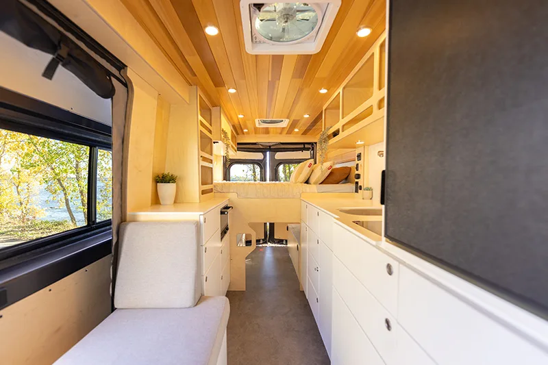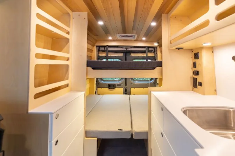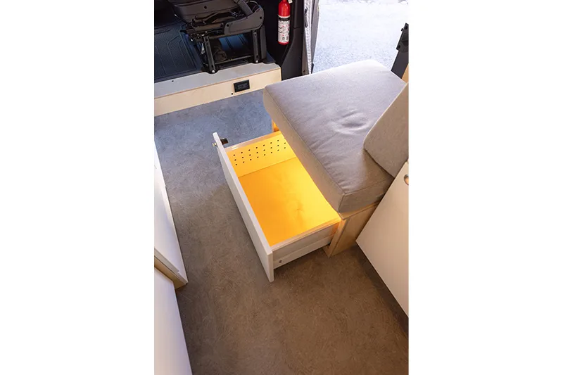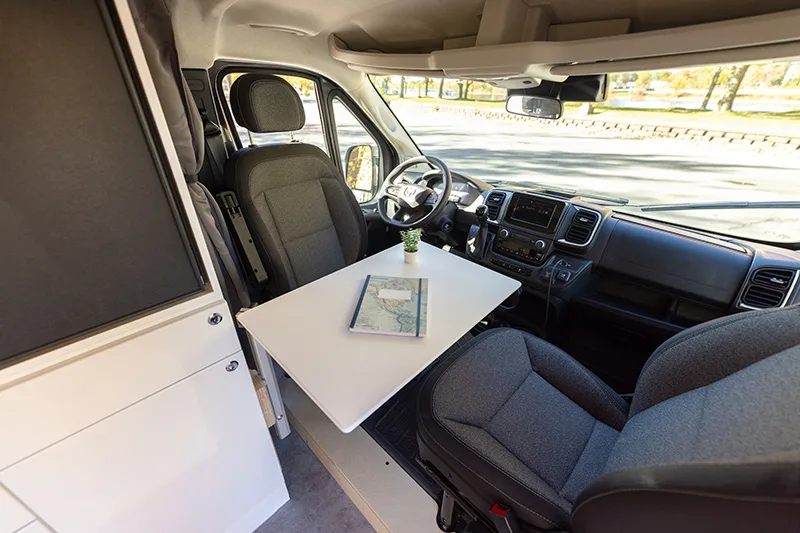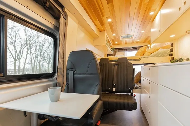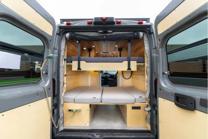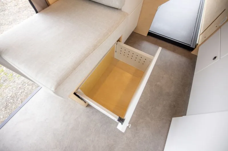 Découvrez le lit électrique, une innovation VanLife Campers qui vous permet de maximiser l’espace de votre van en un seul geste. Relevez-le pour libérer un espace salon/salle à manger ou abaissez-le près du sol pour un accès facile au lit. Disponible en plusieurs configurations!