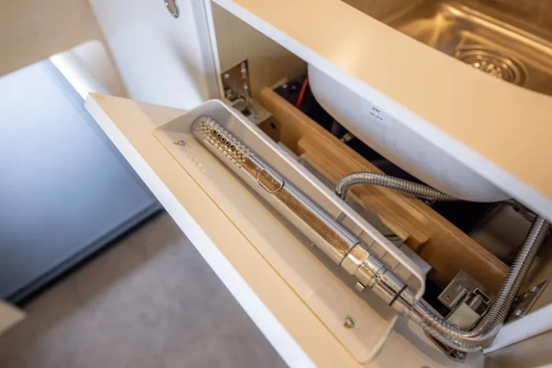 | Système d’eau fraiche – bouteilles 18L avec pompe – capacité d’entreposage de 2 bouteilles | Inclus |