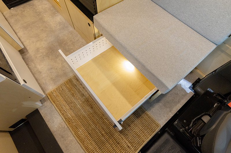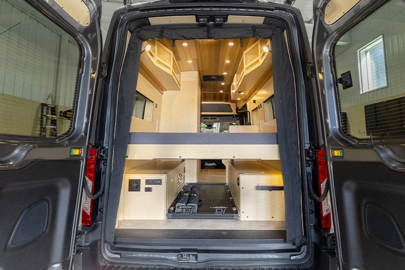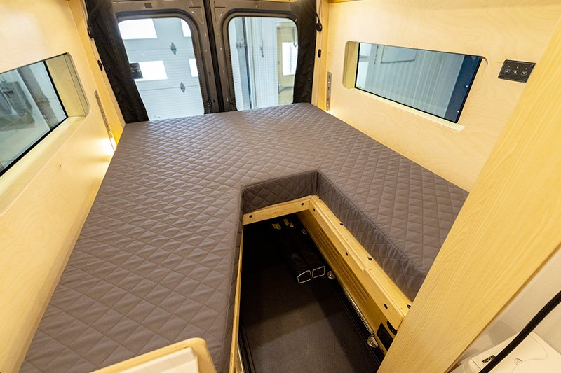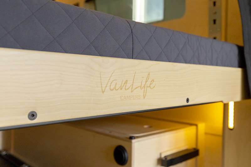 Découvrez le lit électrique, une innovation VanLife Campers qui vous permet de maximiser l’espace de votre van en un seul geste. Relevez-le pour libérer un espace salon/salle à manger ou abaissez-le près du sol pour un accès facile au lit. Disponible en plusieurs configurations!