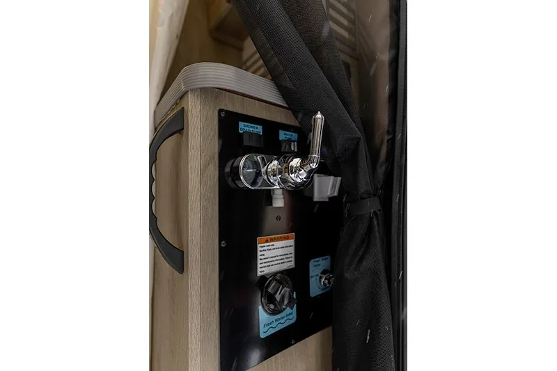 | Water center control panel with valves, connection points and exterior wash station (inside right rear door) |