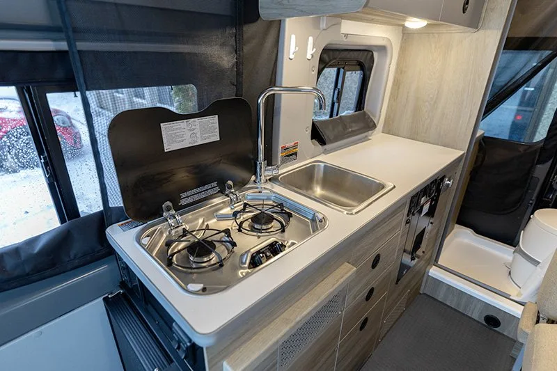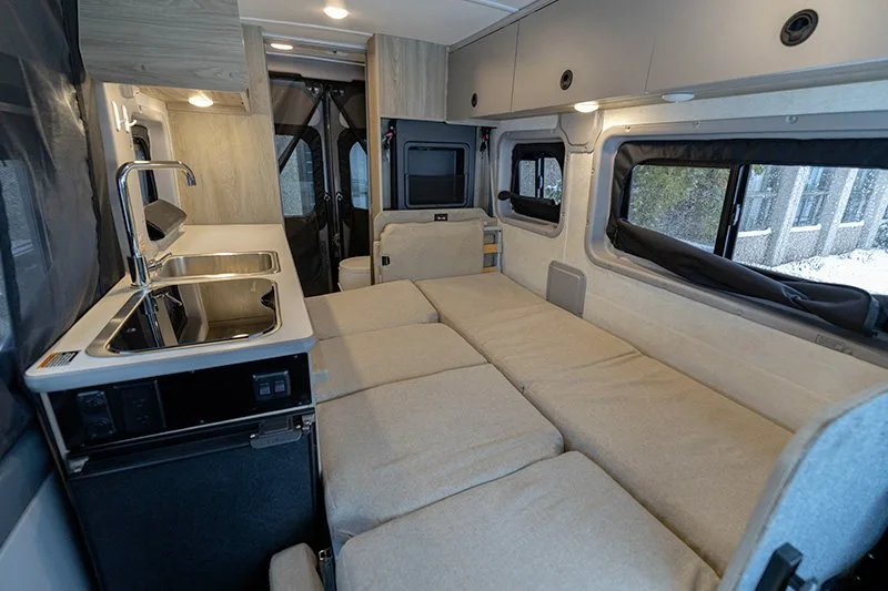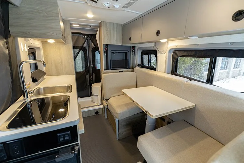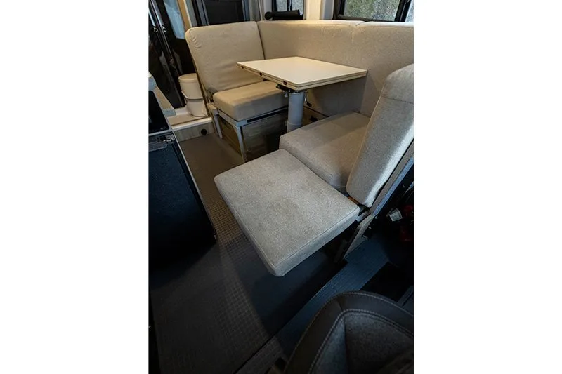 | Dinette with two facing seats (converts to sofa/primary bed, includes two 3-point seatbelts) |