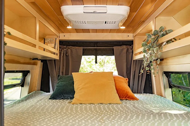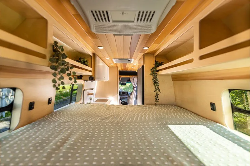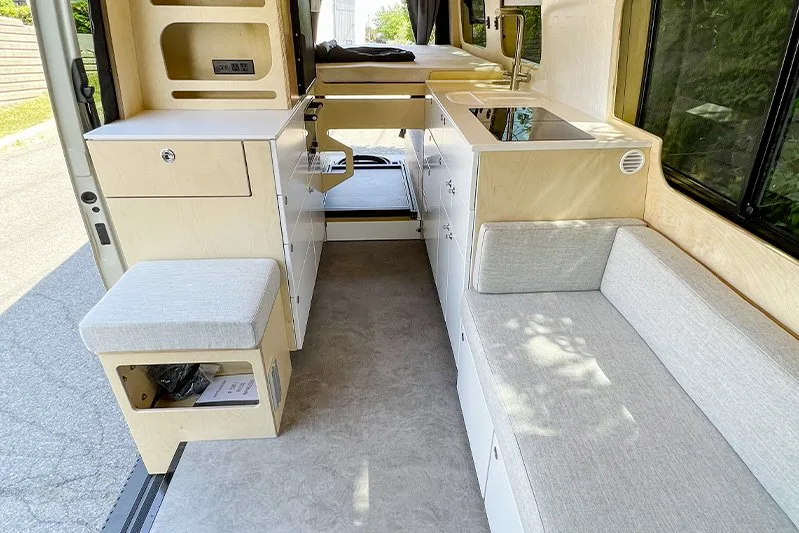 Enjoy an optimized space with a queen-size bed. AWD model available. Bright interior featuring windows on both sides of the cabin.