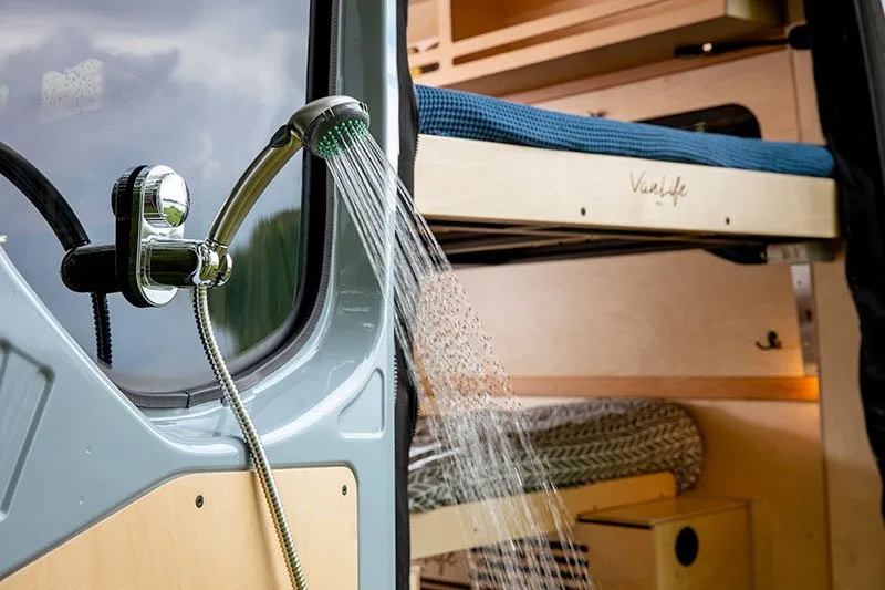 An innovative shower to maximize storage while combining adventure and practicality.
