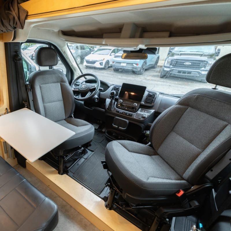 Driver’s side swivel pivot bench for Ram Promaster vehicle from SCOPEMA. Fabricated in France. Hardware for installation included.