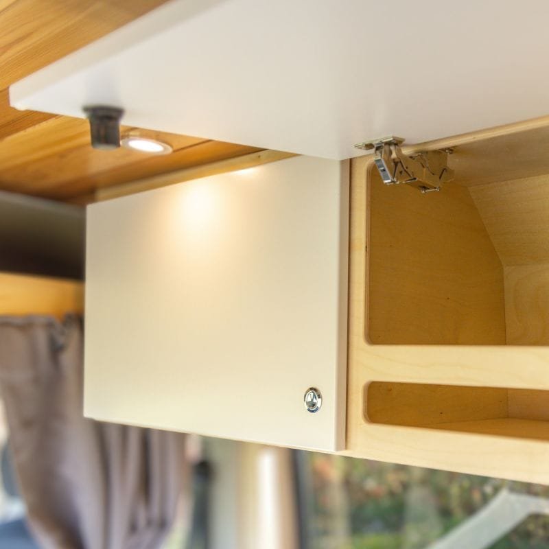 The doors are of MDF, then thermally coated with a layer of polymer. It’s a product that offers endless possibilities, perfect for vans or other types of furniture.